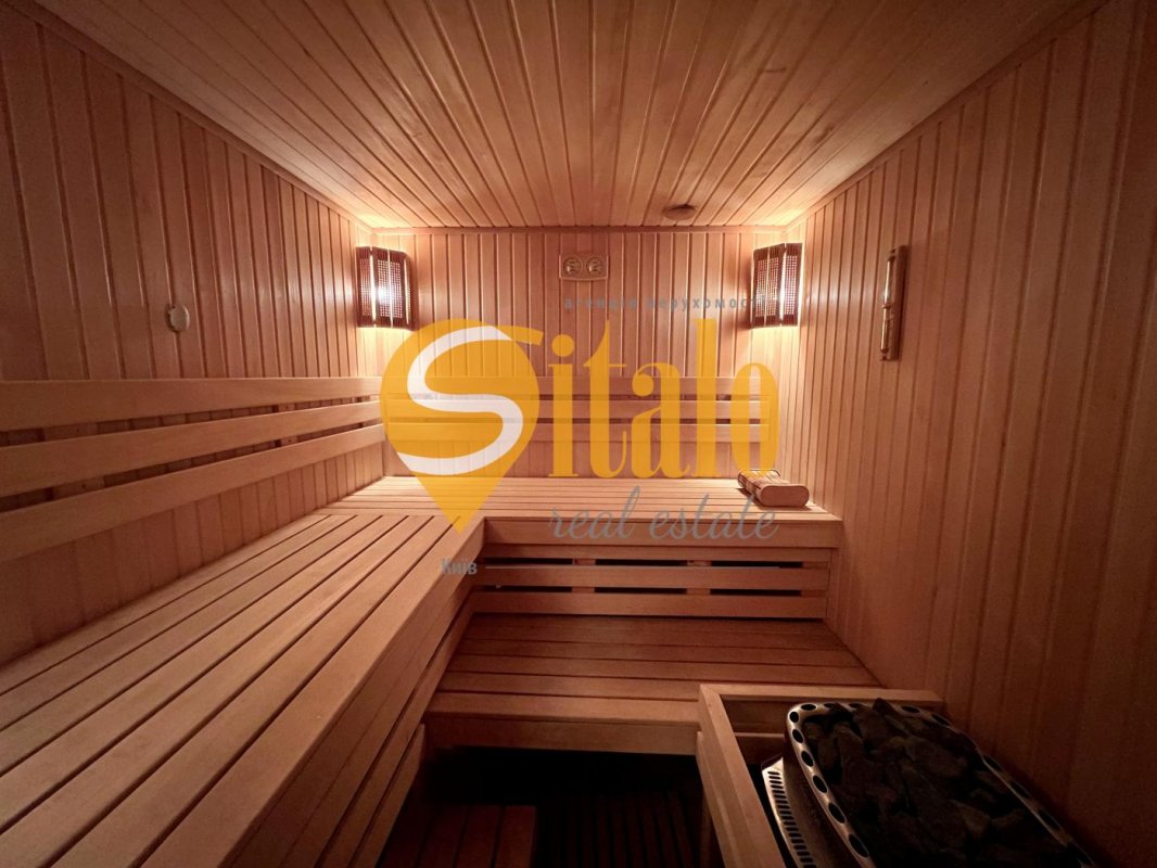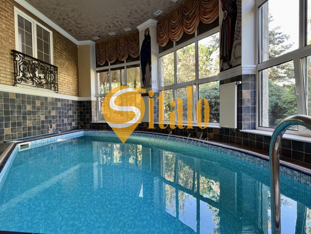 Будинок розкладається з великої вітальні з величезним каміном і окремою обідньою зоною на першому поверсі. Також на першому поверсі розташовані гардеробна, просторий гараж на два автомобілі, повністю обладнана кухня з підсобкою, пральня з гладильнею, басейн і сауна для вашого релаксу, а також кімната для обслуговуючого персоналу і приватна тераса, де ви зможете насолоджуватися кавою вранці або вечірнім видом на озеро.