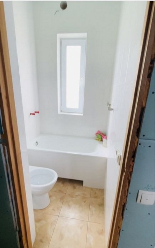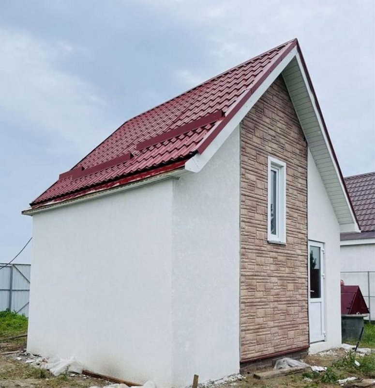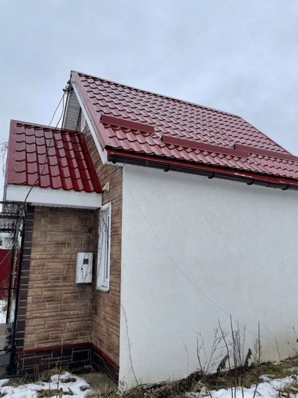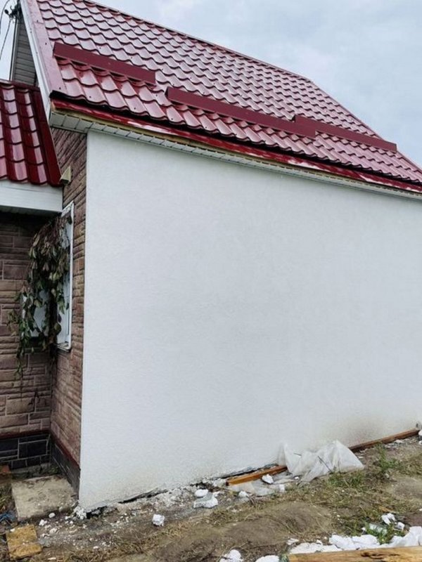 Будинок утеплений по всім технологіям і поштукатурений баранцем, встановлений по всьому будинку водостік, будинок підшитий, фасад зроблений повністю, всередині обшито гіпсокартоном, покладено теплі поли і плитка в ванній повністю і на підлозі в кухні і фартух, ванна і унітаз встановлено.