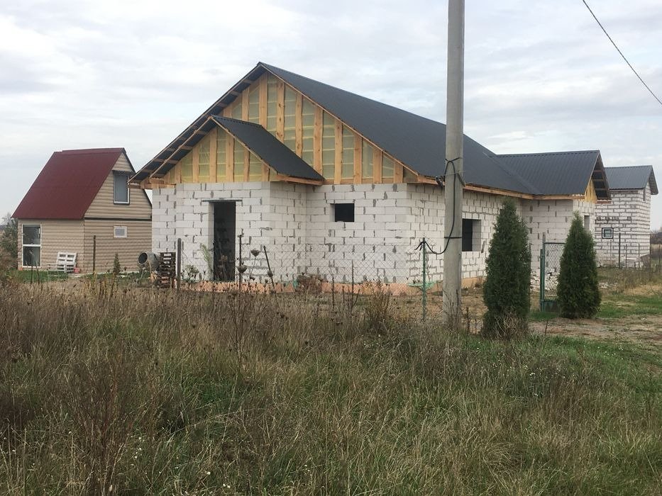 Продам дом в Киевской обл. Браворской район, смт Велика Димерка. Участок 7,5 соток. Построен из газоблока, кладка стен выполнена ровно, четкие углы без отклонений, свес крыши от стены 500 мм. площадь дома 100м2. Так же есть мансардный этаж с площадью почти 100 м2. Высота потолка 2.40. Установлен септик на 6 кубов. Проведен свет на 15 квт. Вода-скважина 45 м. Установлен насос в хоз. Блоке. Все коммуникации проведены.