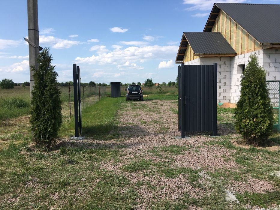 Изначально планировался дом на две семьи по 50 м2 половина. Новым владельцам можно планировать по своему желанию. Дом построен летом 2022 года. фундамент, стены, крыша. Материал на крыше покрыт качественным металопрофилем цвет графит Ral 7024. Новые ворота в цвет крыши. Забор временный сетка рабица. Документы, разрешение на строительство в полном порядке. Участок ровный, прямоугольный есть молодой фруктовый сад.