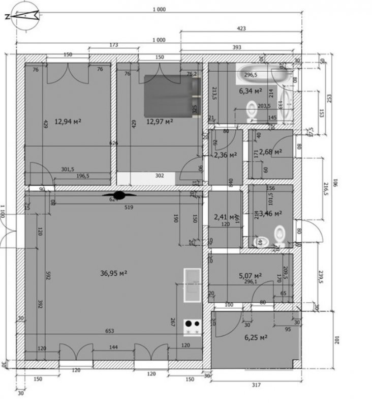 - Два санвузли та гардеробна.