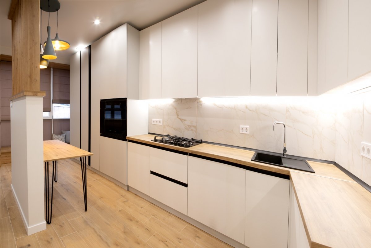 Кухня укомплектована меблями і побутовою технікою.