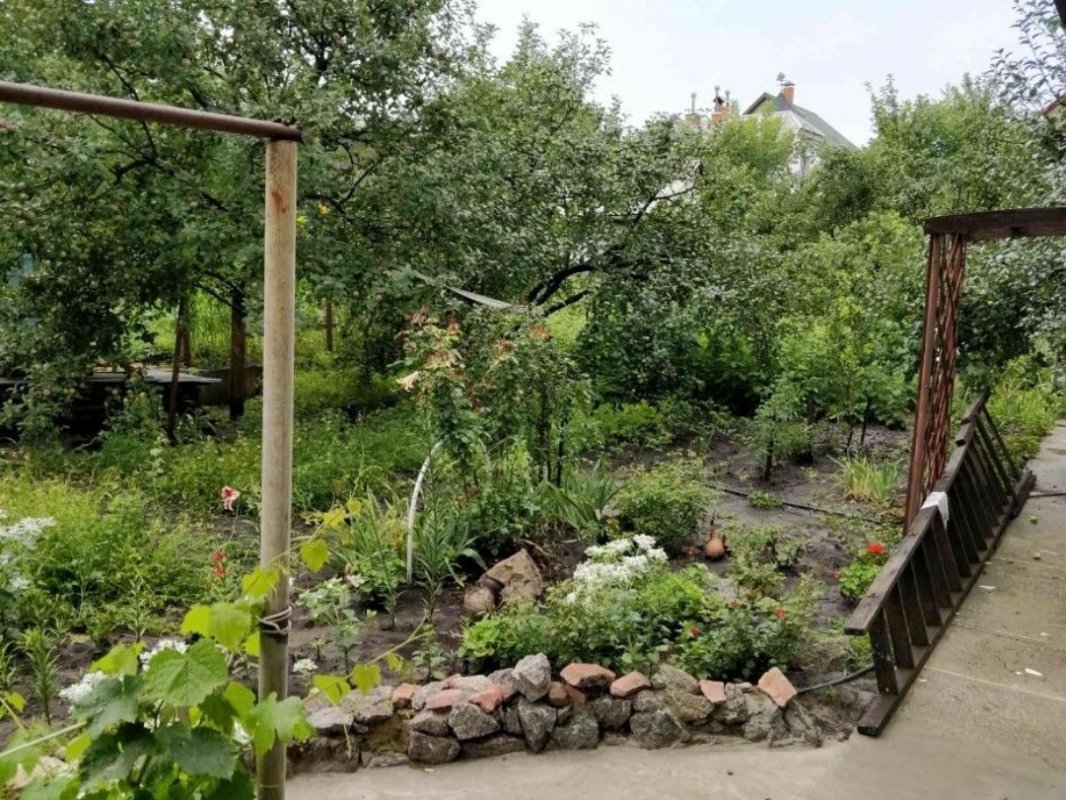На участке имеются фруктовые деревья: яблони, сливы, абрикосы, персики, кусты малины, смородины, клубники, земляники, виноградник, так же хватает места для огурцов, помидоров и картошки с капустой и кабачками. Территория шумозащищена от Одесской трассы.