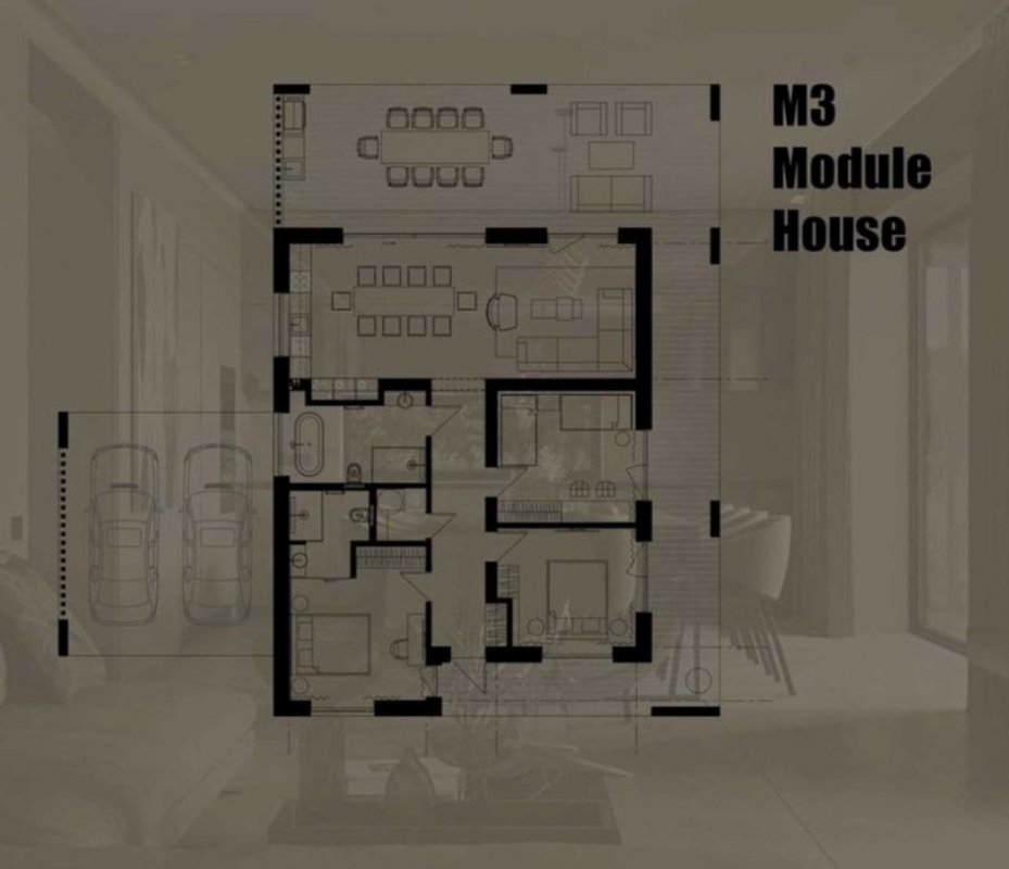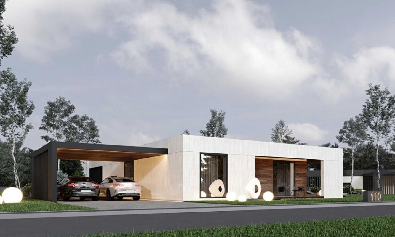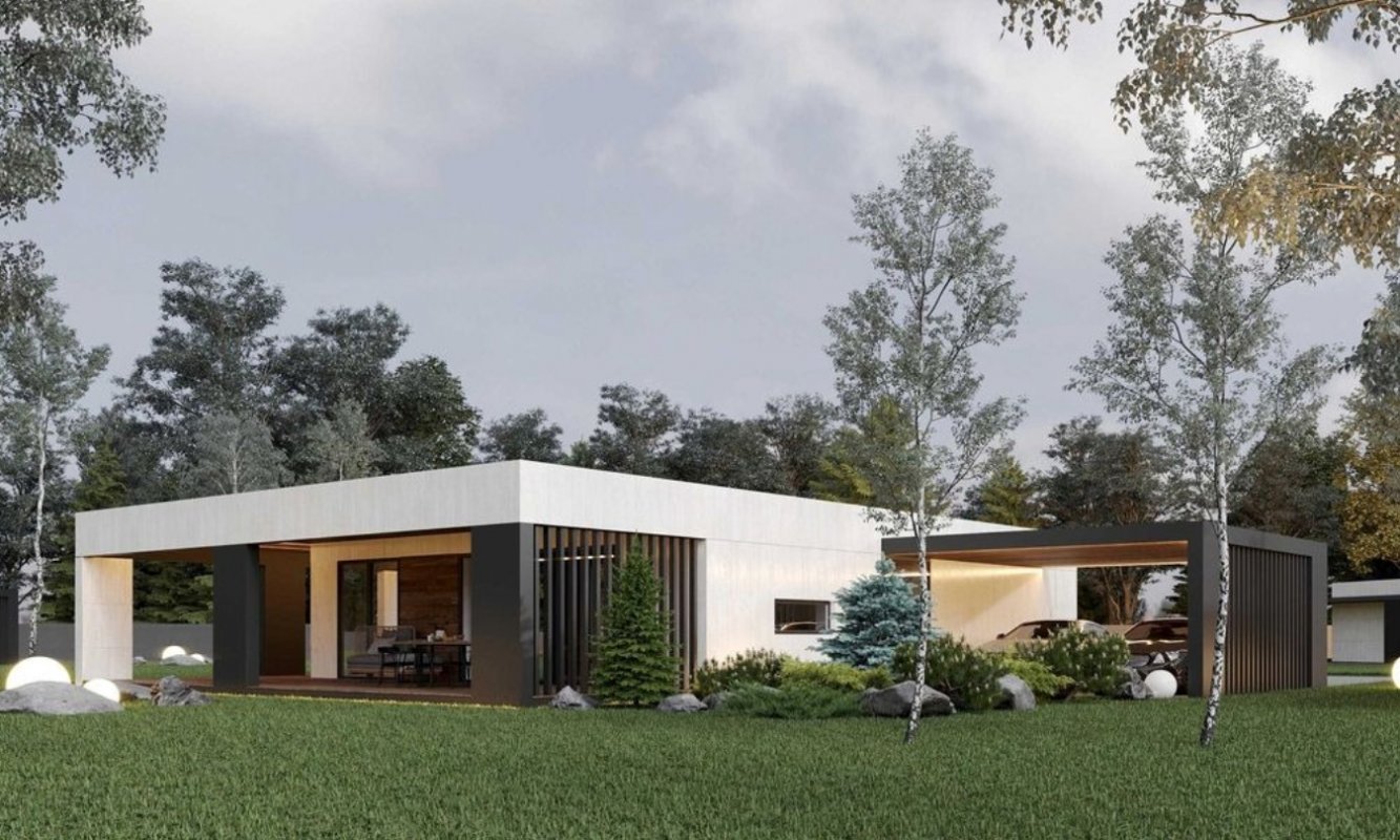 Загальна площа будинку 100 кв. м. Навіс для двох автомобілів.