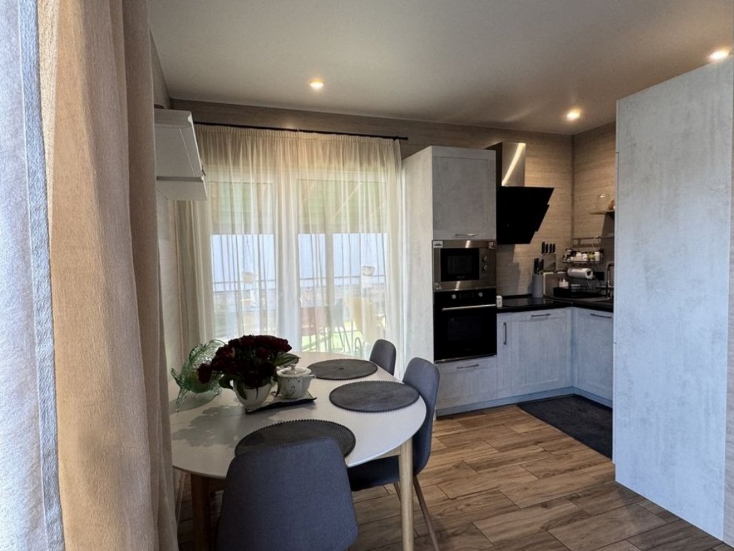 автополивом. Гараж - підсобне приміщення 36 квадратних метрів. Накриття для автомобіля. Додаткова парковка для машин на вулиці (гостьова). Централізоване вивезення сміття, в зимовий період централізоване розчищення снігу по всіх вулицях котеджного містечка; відеоспостереження; інтернет "Оптоволокно"; стабілізатор; електрика - 15 квт (три фази);
