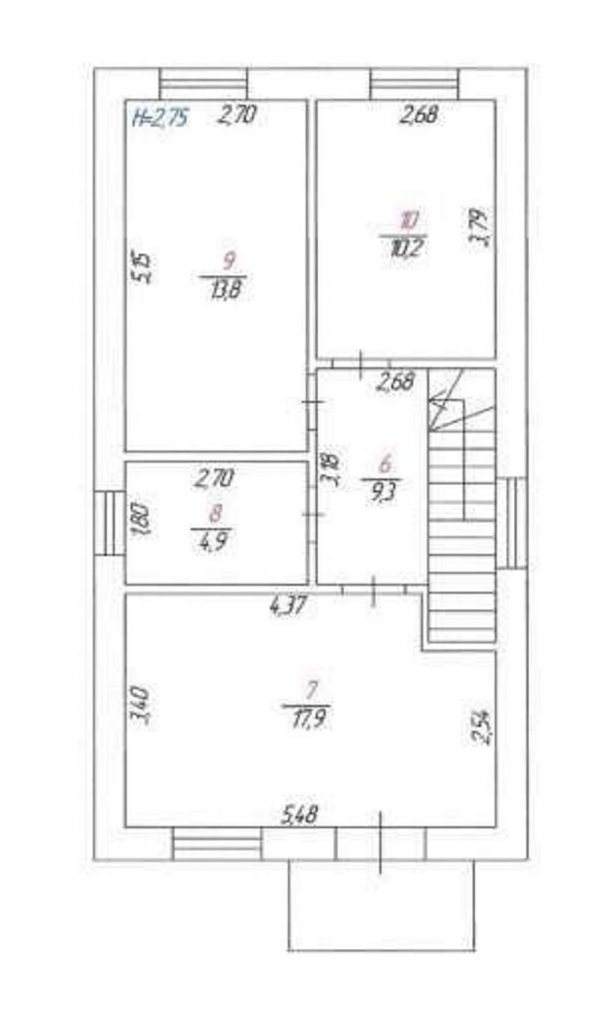 На другому поверсі 3 окремі спальні кімнати: 17,9 м2 із гардеробною, та дві кімнати по 13,8 м2 і 10,2 м2, а також другий санвузол 5 м2.