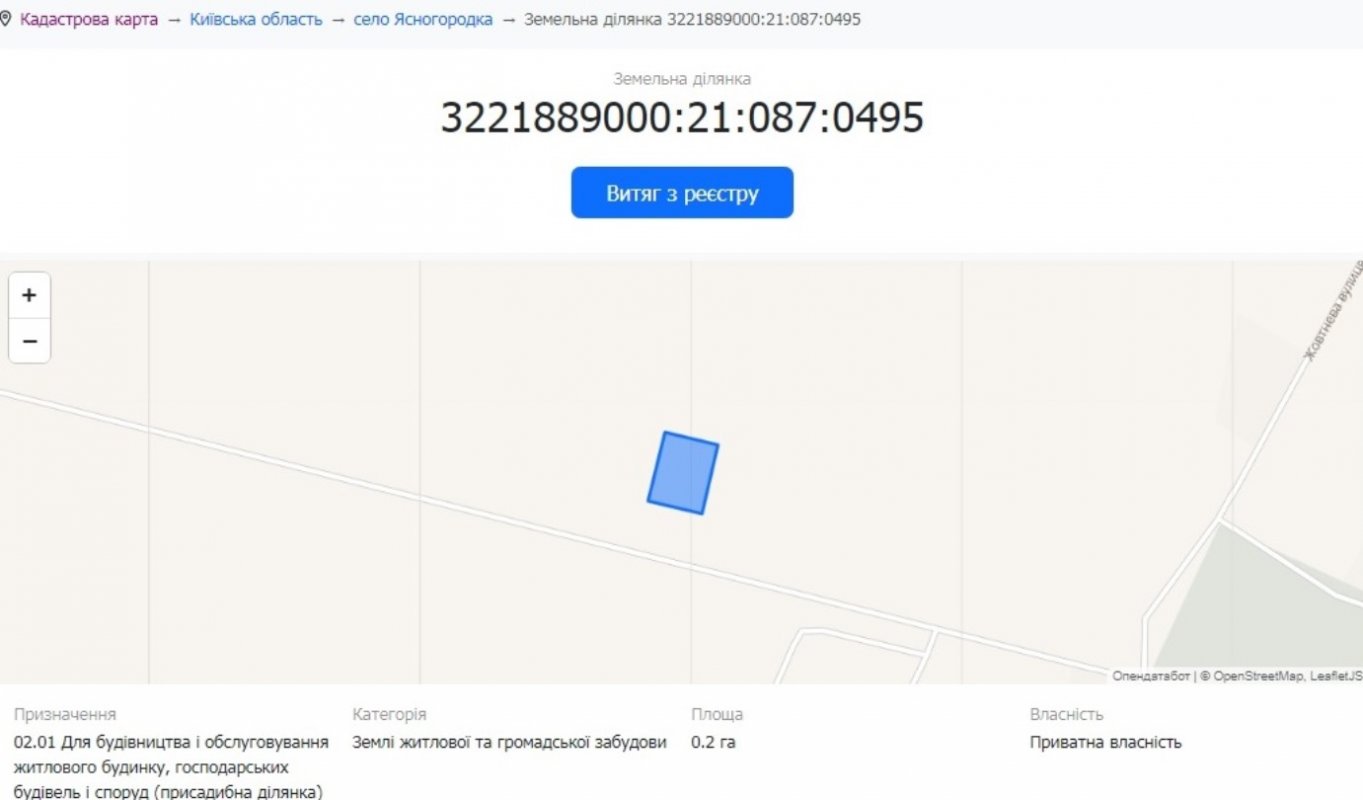 Ділянка знаходиться в урочищі "Куба". Кадастровий номер ділянки 3221889000:21:087:0495. Призначення землі для будівництва та обслуговування житлового будинку, господарських будівель і споруд.