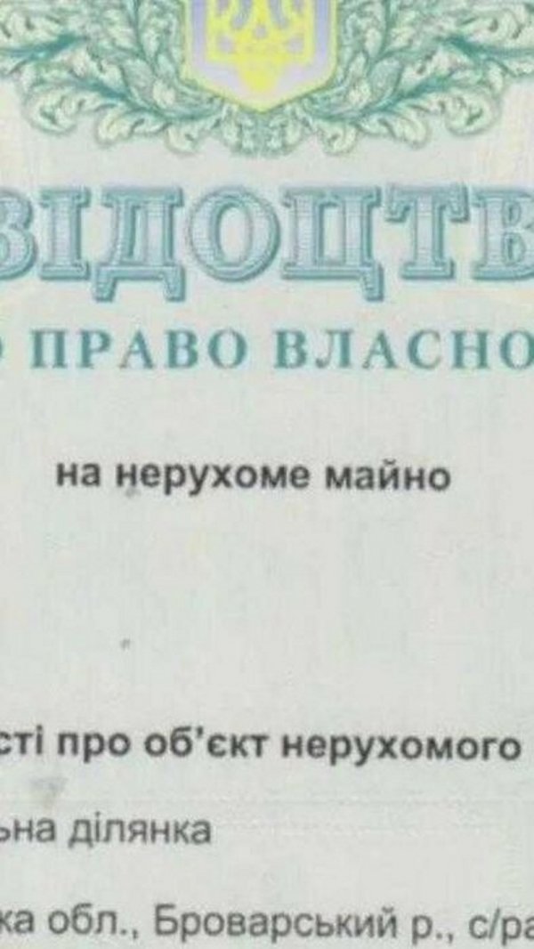 Участок 1324 сотки находится в с. Богдановка. Броварского р-н. Киевской области, и располагается в межах села! Не поле, что очень важно при выборе участка! В 7 км от трассы Киев - Чернигов. Свет 10.000 V и газ среднего давления 185 труба пластик, в 150 метрах от участка. На участке есть два озера, которые надо полностью чистить! В двух километрах от участка остановка электрички, ж. д. станция Жердова. 15 - отправлений на Киев в день. 150 - метров дорога на Рудню, каждые 15 минут маршрутка на Киев через Бровары. Конечная М. Лiсова. До Киева 30 км. Продажа от собственника этого земельного участка. Документы полностью готовы. Цена на отдачу! Свідоцтво про право власності