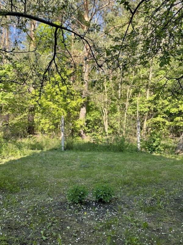 Ділянка розташована на розі території дачного селища. За будинком розташований сад із чудовим краєвидом на сосновий ліс.