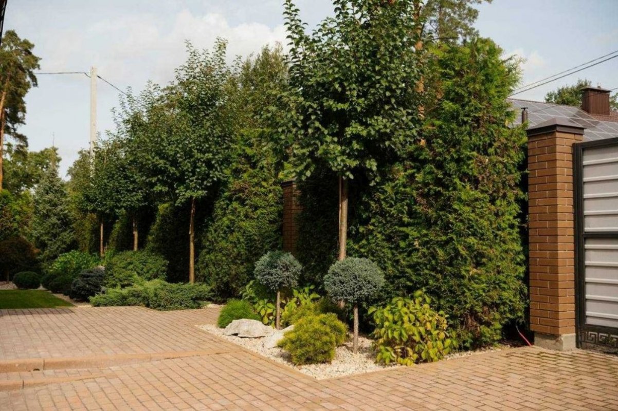 На території будинку виконано озеленення з автоматичним поливом та вбудованою метеостанцією, також встановлено декоративне освітлення дерев, стежок, фасаду будинку, є майданчик на 2 авто, місцем для Тпв. Є генератором з функцією авто запуску (Авр).