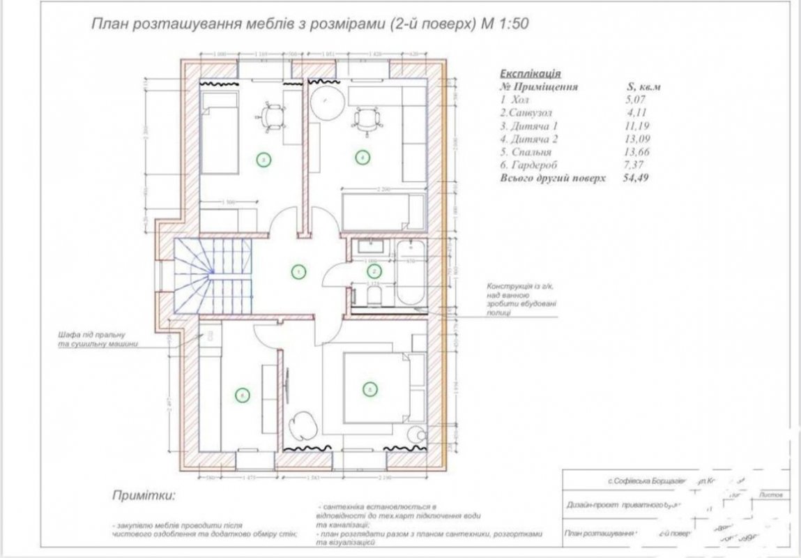 2 поверх: 3 спальні + санвузол + гардероб.