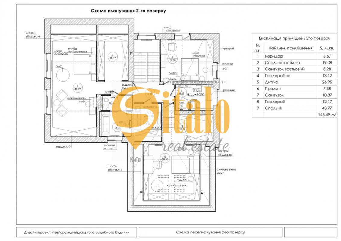 Другий поверх- господарська спальня, дві просторі дитячі кімнати, ванна кімната та велика вбиральня, балкон.