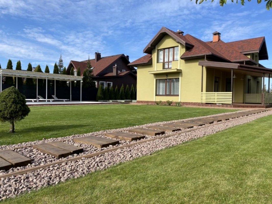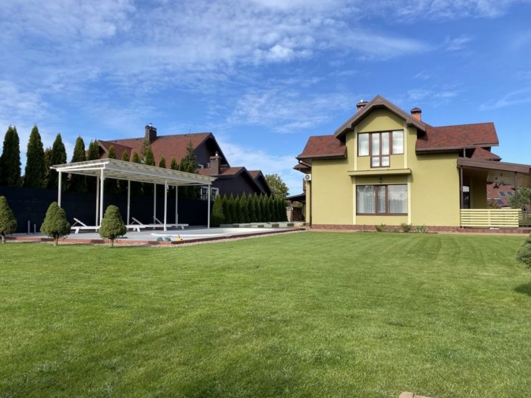 Дом в коттеджном городке, загородный дом, дом под Киевом. Красивый, уютный дом, в закрытом коттеджном городке, на территории городка есть спортивная и детская площадка, круглосуточная охрана. Дом построен только из качественных материалов, имеет 265 кв/м, стены кирпич толщина 52 см плюс утеплен 10 см ватой. Кровля выполнена строго по технологии, гарантия на крышу, есть два типа воды - скважина и центральная, электричество 20 квт, отопление - электрическое, твердотопливное и газ. Бассейн с навесом, терраса, в конце участка залит фундамент под гостевой дом ли другое 6 на 10 м. Дом очень теплый, экономичный, все освещение Led, гараж, котельная, два навеса. Все фото не поместились, многое здесь не описать, все вопросы в телефонном режиме. Дом имеет положительную энергетику, строился с любовью и для себя. Рядом находятся: Петропавловская Борщаговка, Софиевская Борщаговка, Гореничи, Чайка, Вишневое, Святопетровское, Петрушки, Стоянка, Милая, Шевченково, Белогородка, Дмитровка, Капитановка, Шпитьки, Горбовычи, Бучанский район, Киево Святошинский. Возможен обмен на недвижимость или авто с доплатой мне (собственнику этого дома).