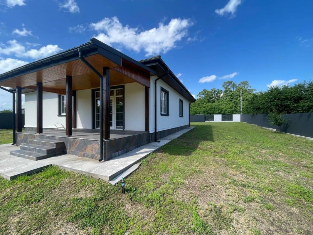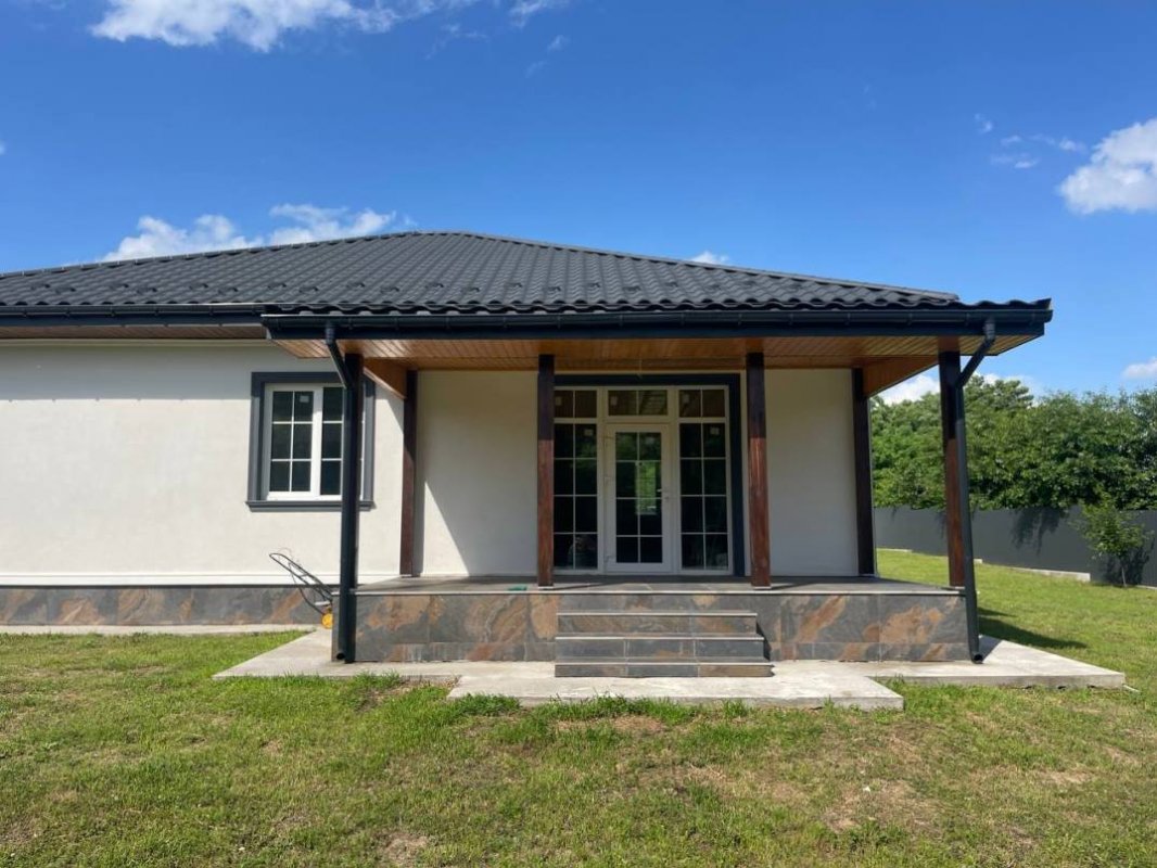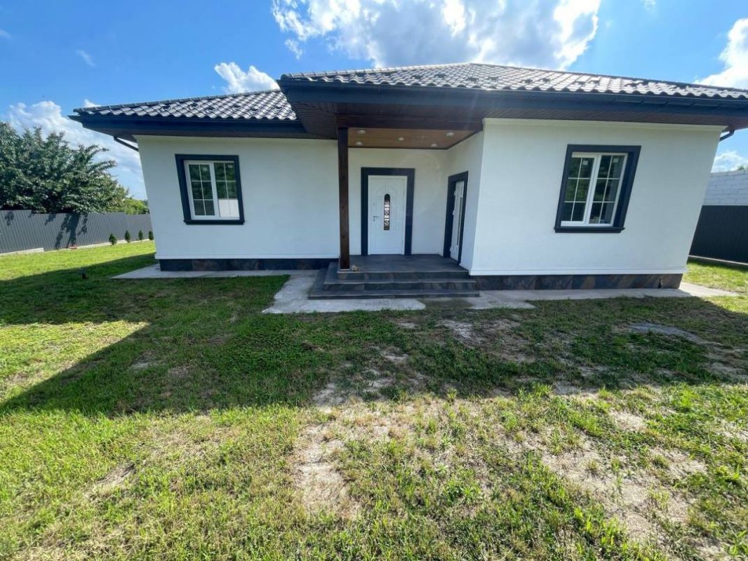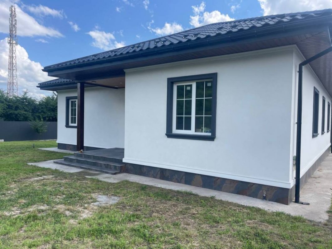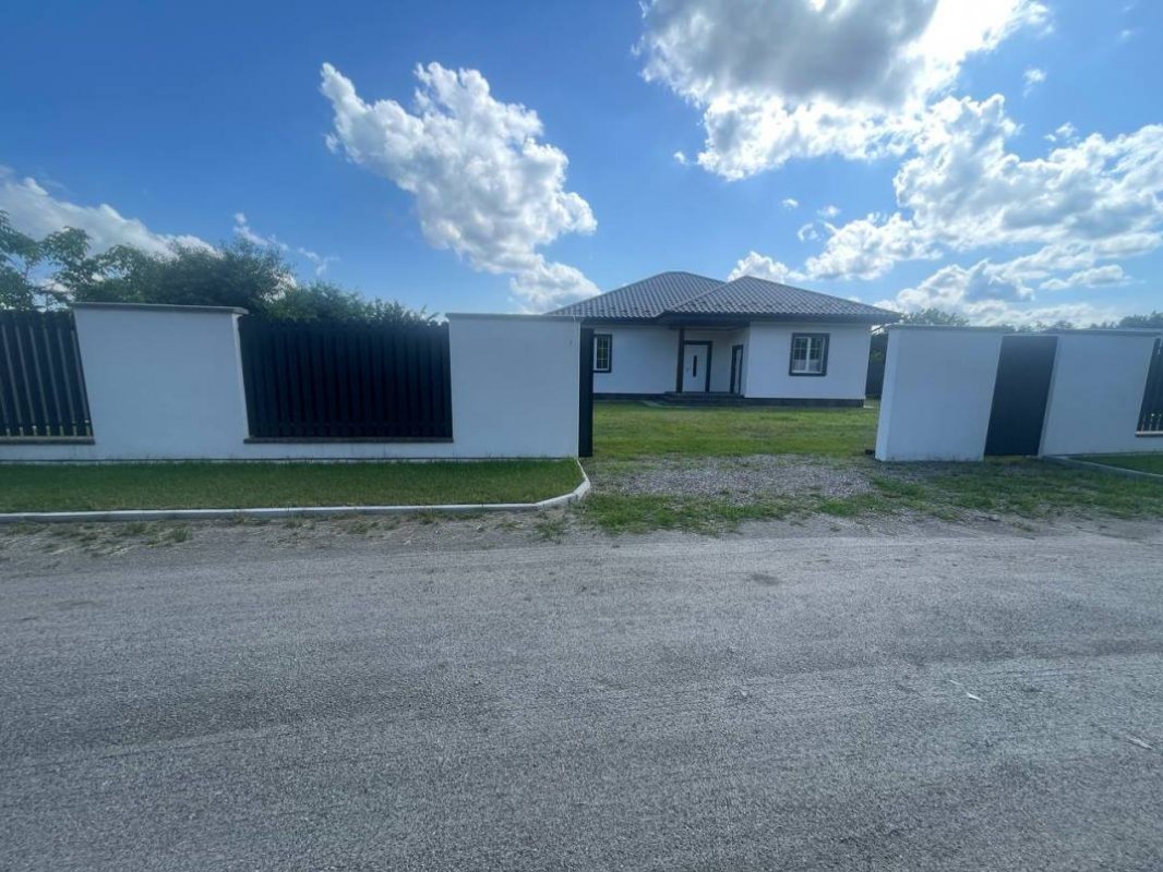 В продаже новый одноэтажный дом площадью 160 м. кв., построенный в 2023 году в лесной части села Процев, Бориспольского района. Дом находится в уютном и тихом месте. Просторный и ухоженный участок 17 соток. Потолки 3 метра. Дом построен из пенобетона, стены утеплены базальтовой ватой, кровля дома из оцинкованной металлочерепицы, трёх камерные энергосберегающие стеклопакеты Rehau (толщина профиля 70 мм). Подключено электричество (15 квт – 3 фазы), скважина глубиной 65 метров. Автономная экологичная канализация. Выполнены тёплые полы + радиаторное отопление. Полностью закончена система отопления дома с автоматикой контроля температуры в каждой комнате. В котельной установлено самое современное и качественное оборудование: