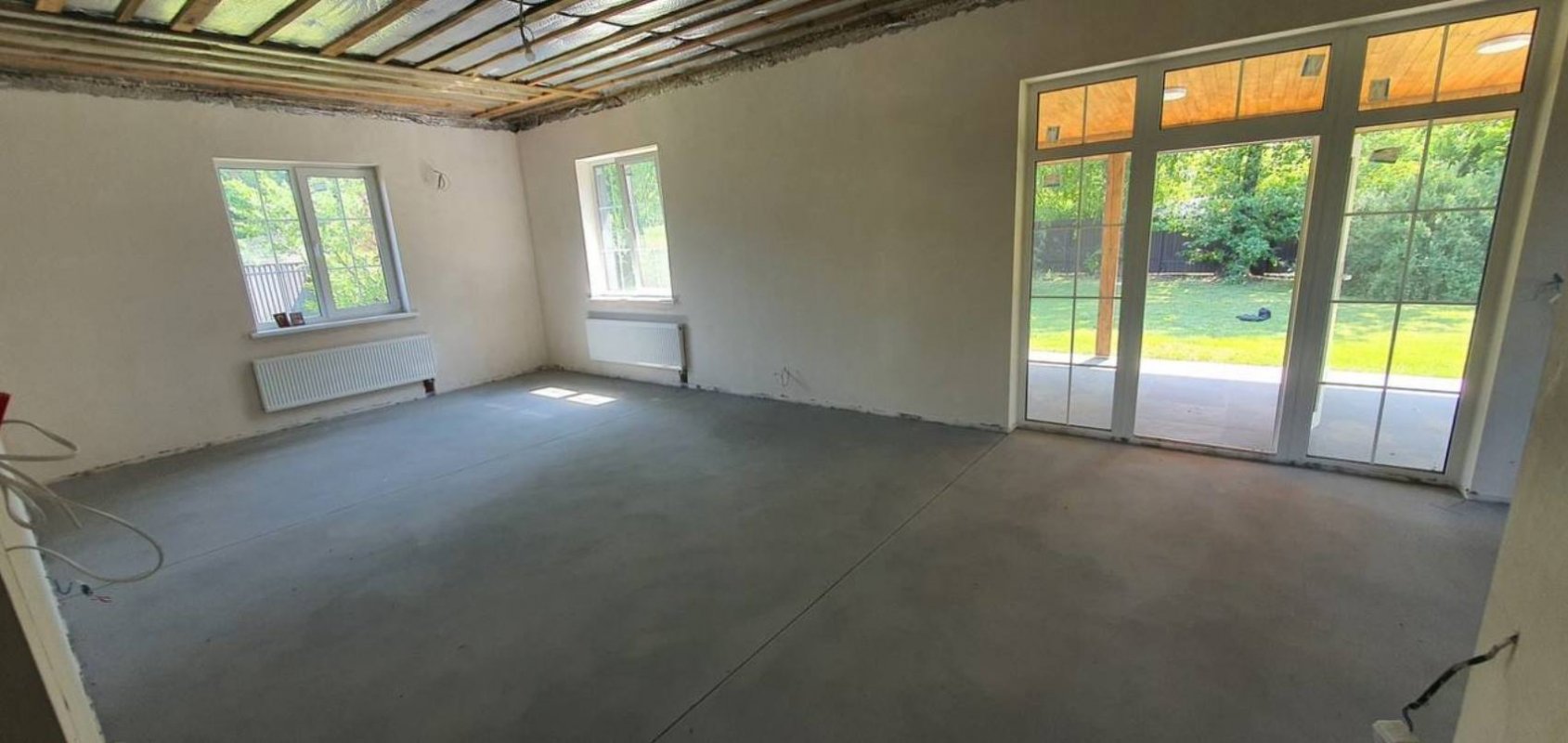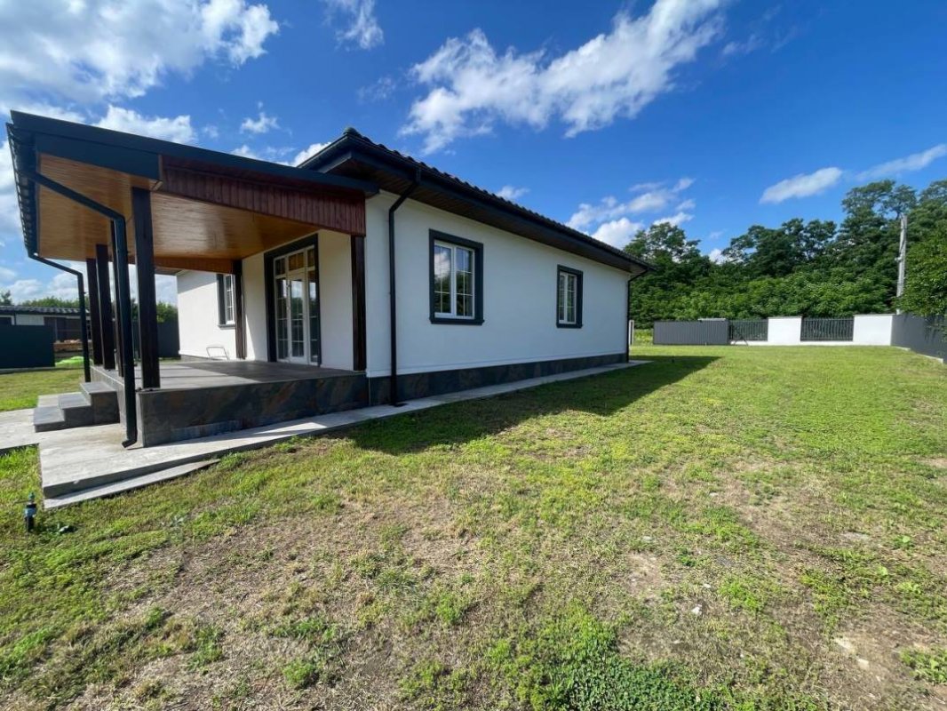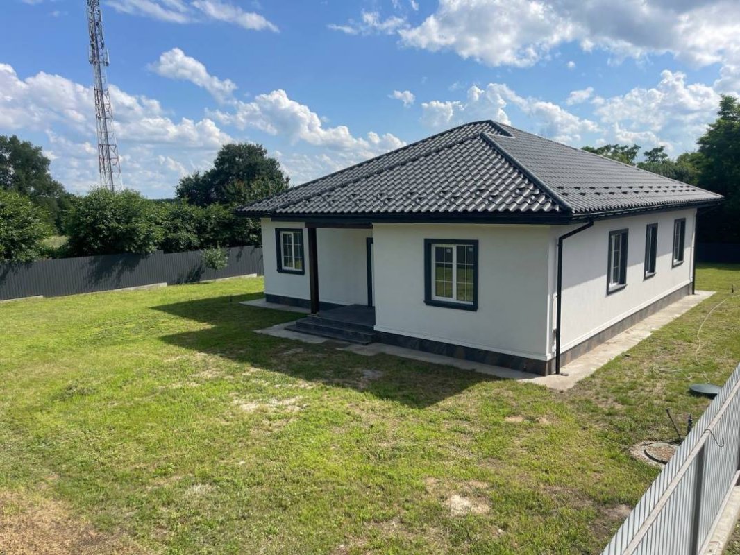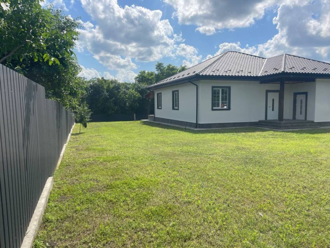В продаже новый одноэтажный дом площадью 160 м. кв., построенный в 2023 году в лесной части села Процев, Бориспольского района. Дом находится в уютном и тихом месте. Просторный и ухоженный участок 17 соток. Потолки 3 метра. Дом построен из пенобетона, стены утеплены базальтовой ватой, кровля дома из оцинкованной металлочерепицы, трёх камерные энергосберегающие стеклопакеты Rehau (толщина профиля 70 мм). Подключено электричество (15 квт – 3 фазы), скважина глубиной 65 метров. Автономная экологичная канализация. Выполнены тёплые полы + радиаторное отопление. Полностью закончена система отопления дома с автоматикой контроля температуры в каждой комнате. В котельной установлено самое современное и качественное оборудование: