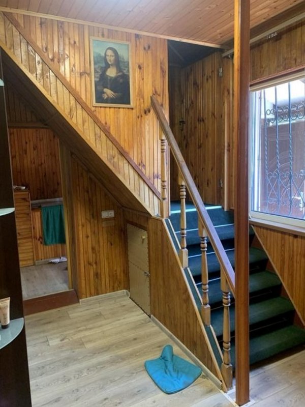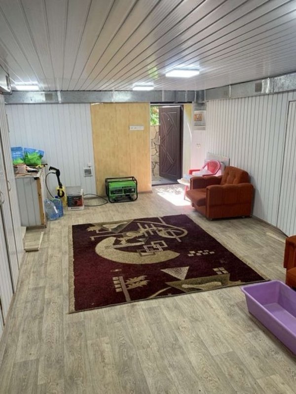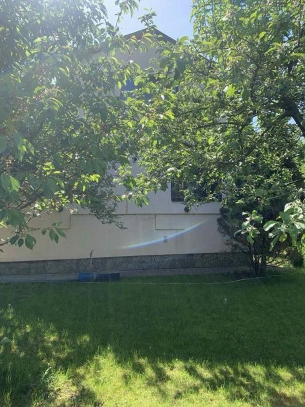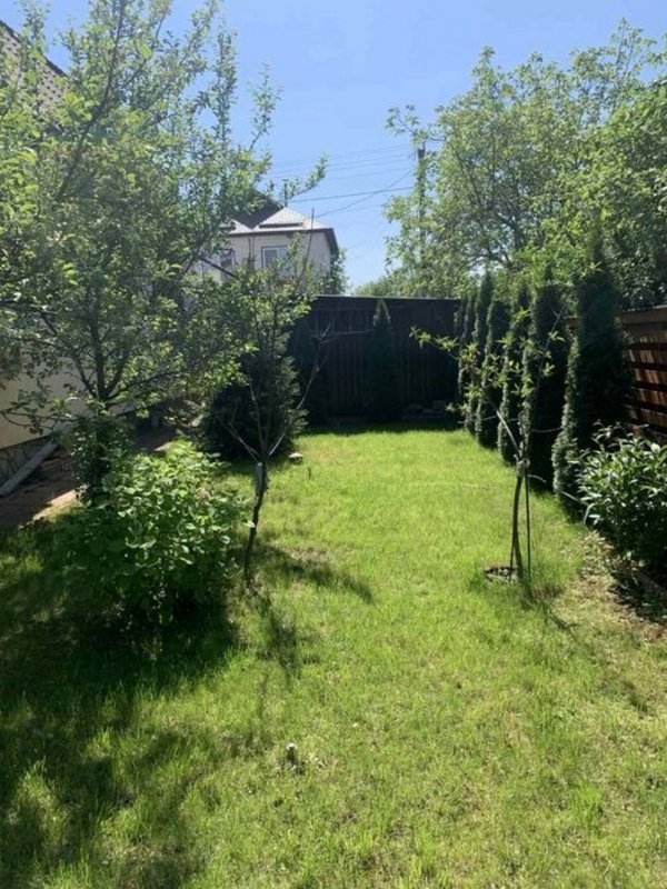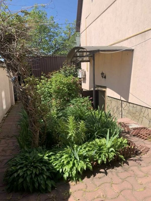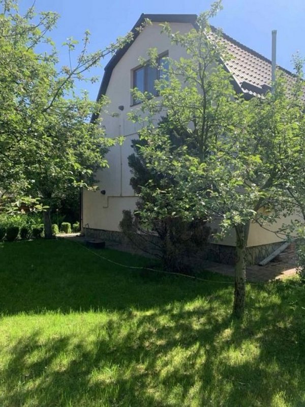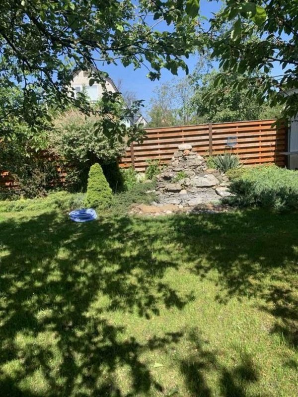 Площа будинку 140 кв. м. Побудований з цегли та утеплений пінопластом 10 см. На ділянці є гараж на дві машини, літня кухня, госпблок з санвузлом і душем, барбекю. Є діючий водоспад з водоймою, фруктові дерева, туї, ялинки, квітники. Площа ділянки 6 соток.