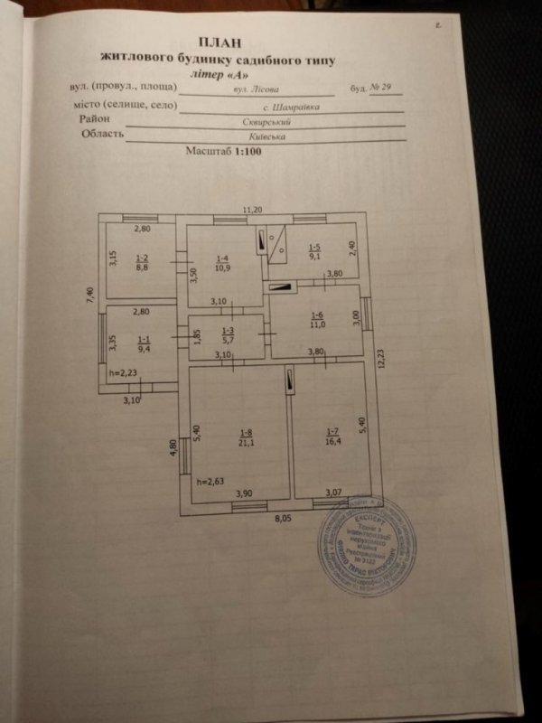 Продам дом в с. Шамраевка. Объект находится на улице Лесной около леса, река Раставица в пешей доступности. До г. Белая Церковь 12 километров. В доме 4 комнаты, санузел, кухня и веранда. Есть гараж, летняя кухня, подвал и сарай. Участок 25 соток. Все коммуникации есть, газ, вода и канализация, колодец с питьевой водой. Можно также отапливать печью. Торг уместен.