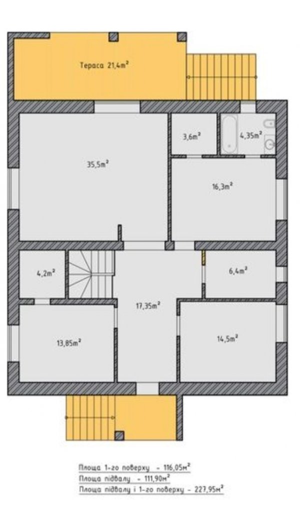 Будинок одноповерховий на 256 м2, стіни готові під чистове оздоблення. З підвальним приміщенням на весь будинок.
