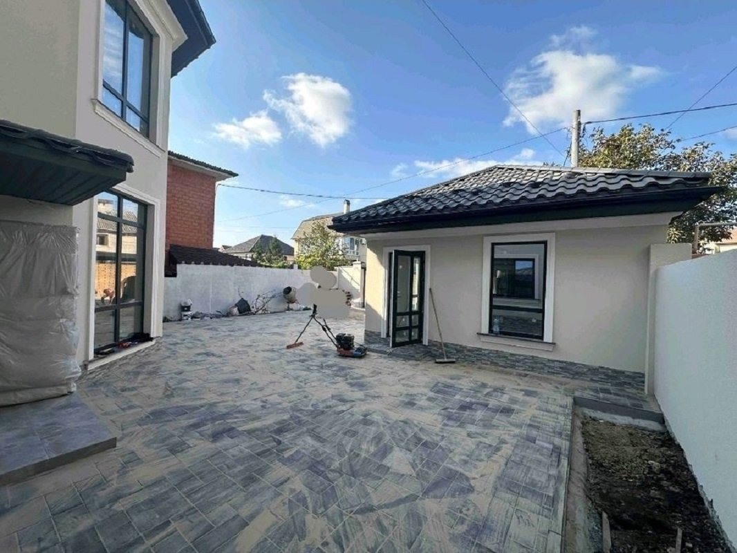 Отдельно стоящий, новый дом, высшего качества строительства. Дорогие окна с наружной ламинацией и мультифункциональными стеклопакетами с энергосбережением. Крыша - металлочерепица италия. За домом большая терраса. Все коммуникации -свет, вода, газ, канализация-септик. Двор устелен тротуарной плиткой.